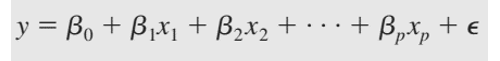 Mô hình hồi quy đa biến tổng quan với Y là biến phụ thuộc và những biến độc lập X1, X2, X3,…,Xp.