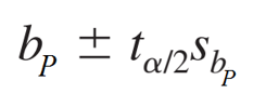 Giống như công thức ước lượng giá trị của một đối tượng nghiên cứu bất kỳ, công thức ước lượng áp dụng cho hồi quy tuyến tính cũng được dựa trên giá trị t tra từ bảng phân phối t với bậc tự do, mức ý nghĩa bất kỳ và độ lệch chuẩn của biến, ở đây là độ lệch chuẩn ước lượng của hệ số hồi quy (Sb)