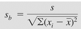 Công thức tính độ lệch chuẩn của hệ số hồi quy từ sai số chuẩn của giá trị ước lượng σ2 của sai số ε còn gọi là s hay se.