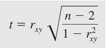 Công thức tính giá trị kiểm định t cho hệ số tương quan r để bác bỏ hay không bác bỏ giả thuyết có mối tương quan giữa 2 biến.