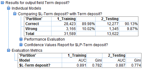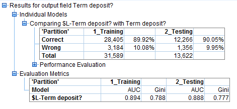 Mức độ chính xác của mô hình trong việc phân loại chính xác đạt tỷ lệ rất cao gần 90% ở cả 2 tập dữ liệu, tuy nhiên nếu chúng ta chỉ quan tâm về khả năng phân loại hay dự báo chính xác những khách hàng sẽ đăng ký term deposit mà thôi, thì cần xem xét thêm các chỉ số trong Confusion Matrix áp dụng cho tập dữ liệu training.