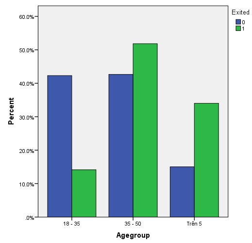 Khả năng rời dịch vụ của nhóm khách hàng trong độ tuổi 35 – 50 tuổi là cao nhất