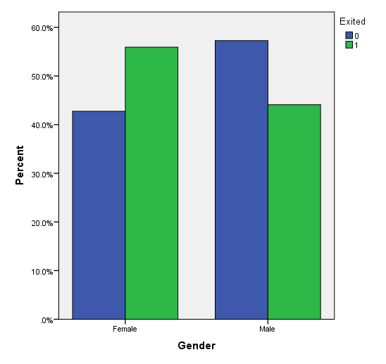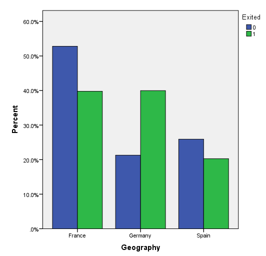 Khả năng khách hàng tại Đức vào Pháp rời dịch vụ là cao ngang nhau, còn ở Tây Ban Nha là thấp nhất. Khả năng khách hàng nữ rời dịch vụ là cao hơn.