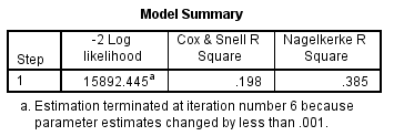 LR = 2 ln (LFull) – 2 ln (LSubset) = – 15787 – (-15892) = 105