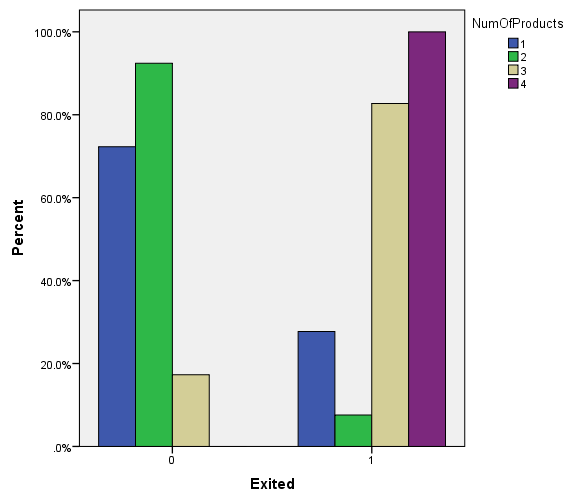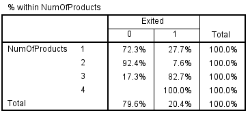 Khách hàng đăng ký cả 4 dịch vụ của ngân hàng thì tỷ lệ 100% rời dịch vụ, nguyên nhân có thể khách hàng quan tâm đến các sản phẩm, dịch vụ ở ngân hàng khác, hay cả 4 dịch vụ hiện tại của ngân hàng đều không thỏa mãn khách hàng.