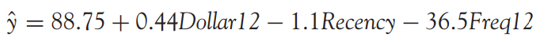 Vì thế chúng ta không cần quan tâm nữa đến biến Dollar24, Freq24, và Card, như vậy chỉ còn biến Recency thì sao? Trong ma trận hệ số tương quan ở bài viết trước, Recency là biến duy nhất có hệ số tương quan âm với biến mục tiêu, nghĩa là Recency sẽ thấp, do số tháng từ lần cuối mua hàng sẽ giảm đi sẽ có khả năng chi cao hơn khách hàng ít mua hàng Recency cao, tức số tháng từ lần cuối mua hàng sẽ tăng lên, các khách hàng này có thể thích mua sắm ở những cửa hàng khác nhau, chứ không chỉ duy nhất cửa hàng mà chúng ta đang phân tích. Recency còn cho thấy hiệu quả kinh doanh, hiệu quả marketing, hiệu quả CRM của chính cửa hàng. Tuy nhiên chúng ta không thể đưa biến này vào mô hình vì p-value > 0.05 rất nhiều, và nguyên nhân thoe kết quả phân tích nó có thể nó không thể hiện tuyệt đối mối liên hệ bền vững với số tiền mà khách hàng có thể bỏ ra trong mỗi lần mua hàng. Do đó kết luận sau cùng, chúng ta sẽ loại bỏ biến Recency từ mô hình ở bài viết trước.