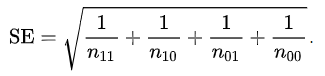 Lý do chúng tôi nhắc đến 2 bảng này là vì sai số chuẩn của odds ratio có công thức: