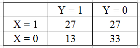 Sau đó lập bảng contigency để tìm các giá trị n. Kết quả như sau: