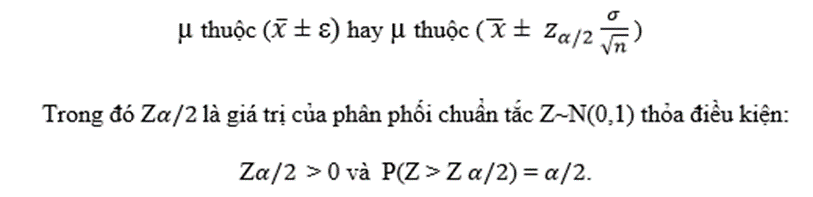 Theo thông lệ thì độ tin cậy sẽ là 95%, tra bảng phân phối chuẩn tắc chúng ta có 1.96*SE là giá trị sai số ε cần tìm cho khoảng ước lượng.